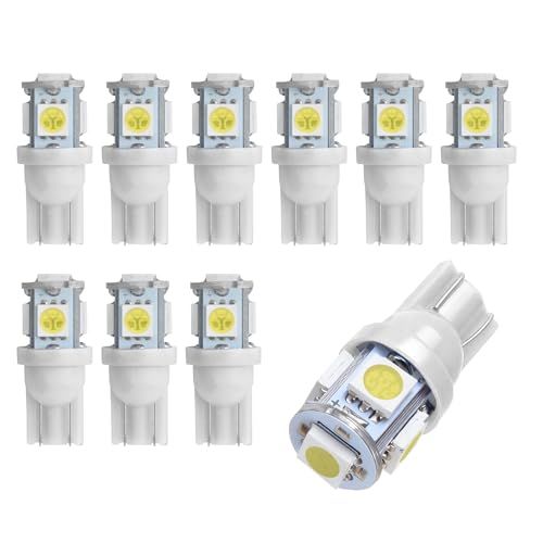 10PCS 194 LED Light Bulbs, T10 Bulb 6500K Wedge 5050 5-SMD Chips, Super Bright Width Marker Light Bulbs Replacement for Car Dome Map Reading Courtesy Side Marker Tail Parking Lights