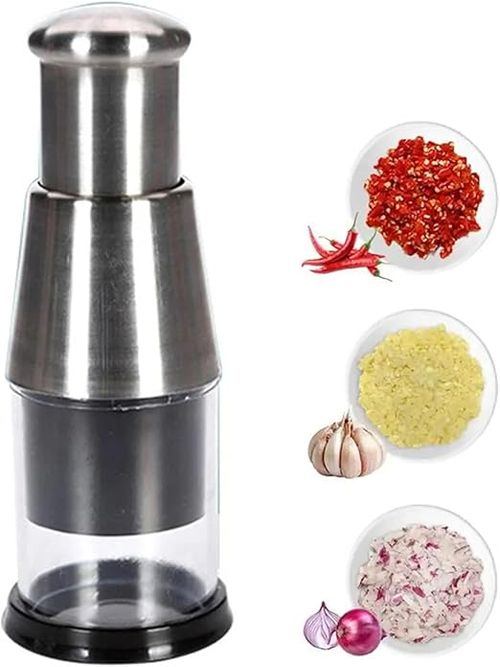 Manual Garlic Chopper Garlic Crusher Pressing Handheld Food Chopper Slicer Vegetable Cooking Crusher Stainless Steel for Food Enthusiasts and Cooking Staff