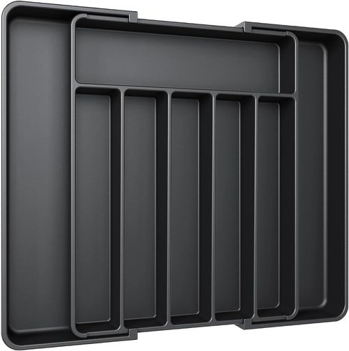 Silverware Organizer - Expandable Kitchen Drawer Organizer, Adjustable Utensil Organizer, Cutlery Tray for Forks, Knives, Multipurpose Kitchen Organizers and Storage Solution, Black, Medium