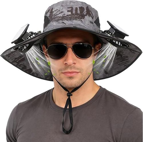 Solar-powered fan hat, men's and women's solar-powered fan hat, wide-brimmed sun hat with 2 solar fans, 2-in-1 hands-free hat fan.