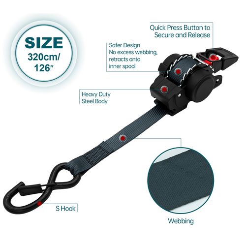 Retractable Ratchet Straps, Heavy Duty 1763lb Break Strength Auto Self Retracting Ratchet Strap with Soft Loops, 10 Feet Tie Down Straps for Securing Cargo Motorcycle Truck